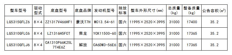 粉粒物料運輸車(chē)產(chǎn)品參數(截止至工信部第354批公告)