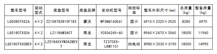 路面養護車(chē)產(chǎn)品參數(截止至工信部第354批公告)