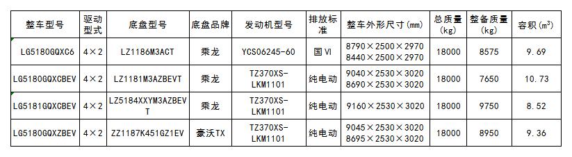 灑水車(chē)產(chǎn)品參數(截止至工信部第354批公告)